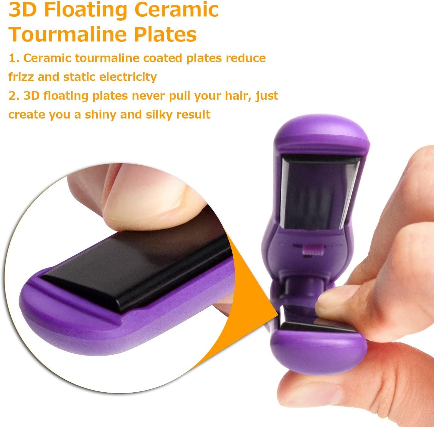 - [3D Ceramic and Tourmaline] The small flat irons for short hair uses advanced PTC ceramic heating technology for even heating. The 3D floating plates crafted from tourmaline ensure zero sticking or pulling, and release negative ions to smooth hair and eliminate frizz. Note: This mini straightener is fixed-temperature and not adjustable.