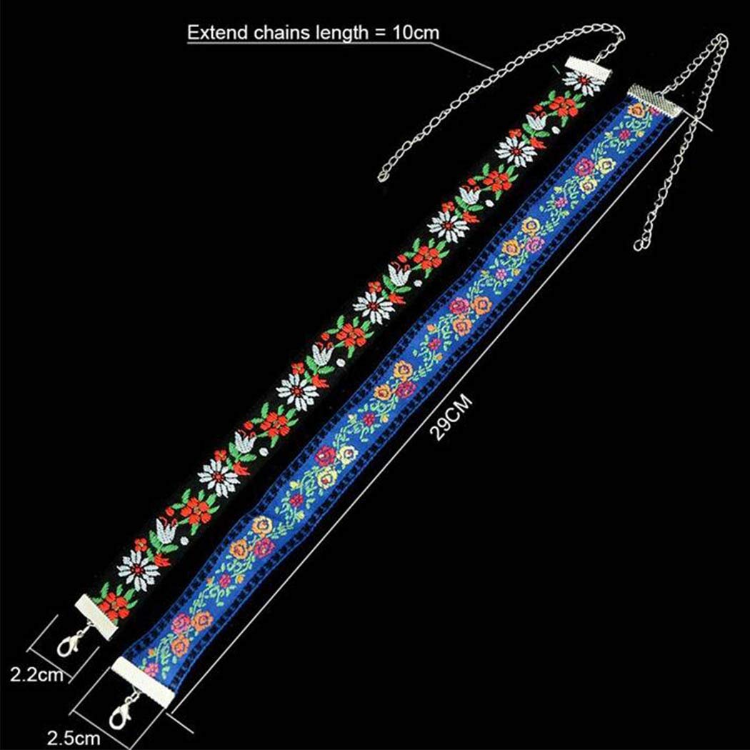 Boho Necklace Flower Choker Necklace Leaves Chain Necklace Jewelry for Women and Girls (Blue)