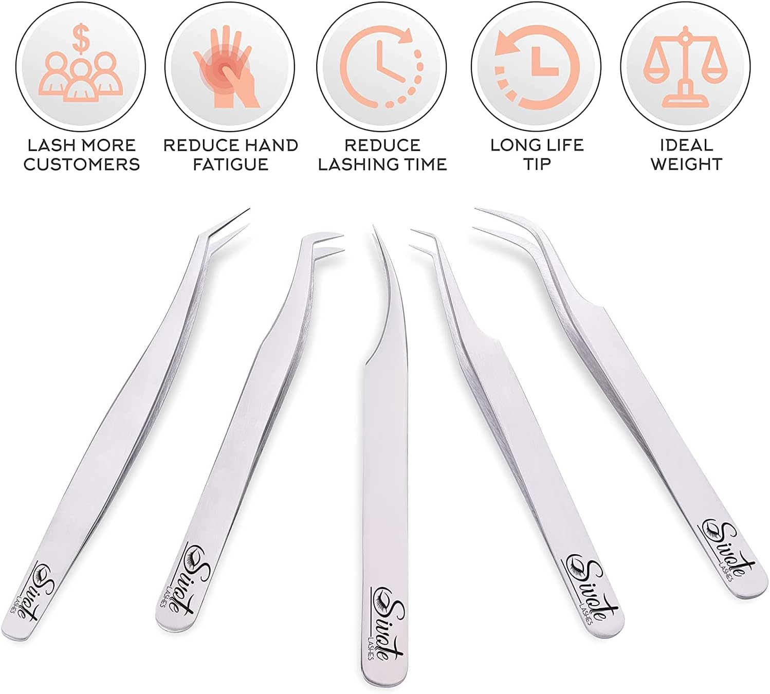 SIVOTE Eyelash Extension Tweezers for Classic & Volume Lashes, 5-Pack, Silver