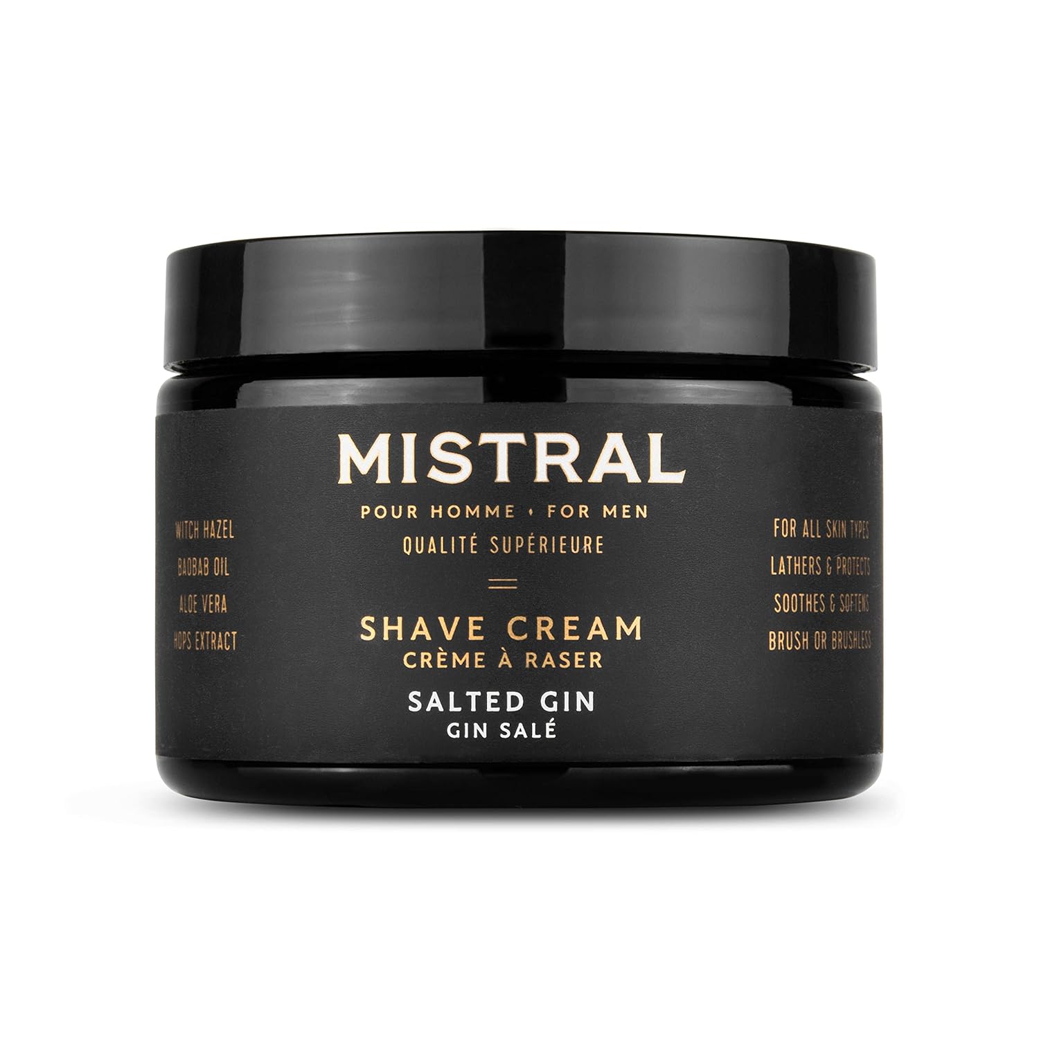 Mistral Salted Gin Shaving Cream for Men | Smooth Triple Layered Foam | Men’s Shave Cream with Organic Plant Extracts | pH-balanced, Phthalates & Paraben-Free | Made in USA. 9oz Tub