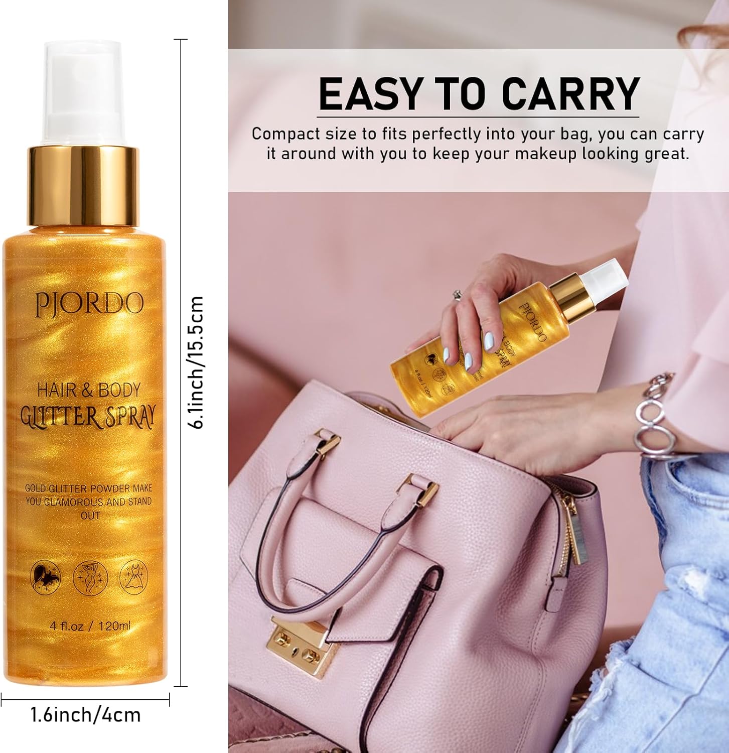• Shine Like A Star: With the finest gold shimmering particles, it instantly enhances your charm, making you look more glamorous and confident and stand out in all occasions. With just a light spray, it shines under different angles of light, making you a shining and eye-catching focal point in the crowd.