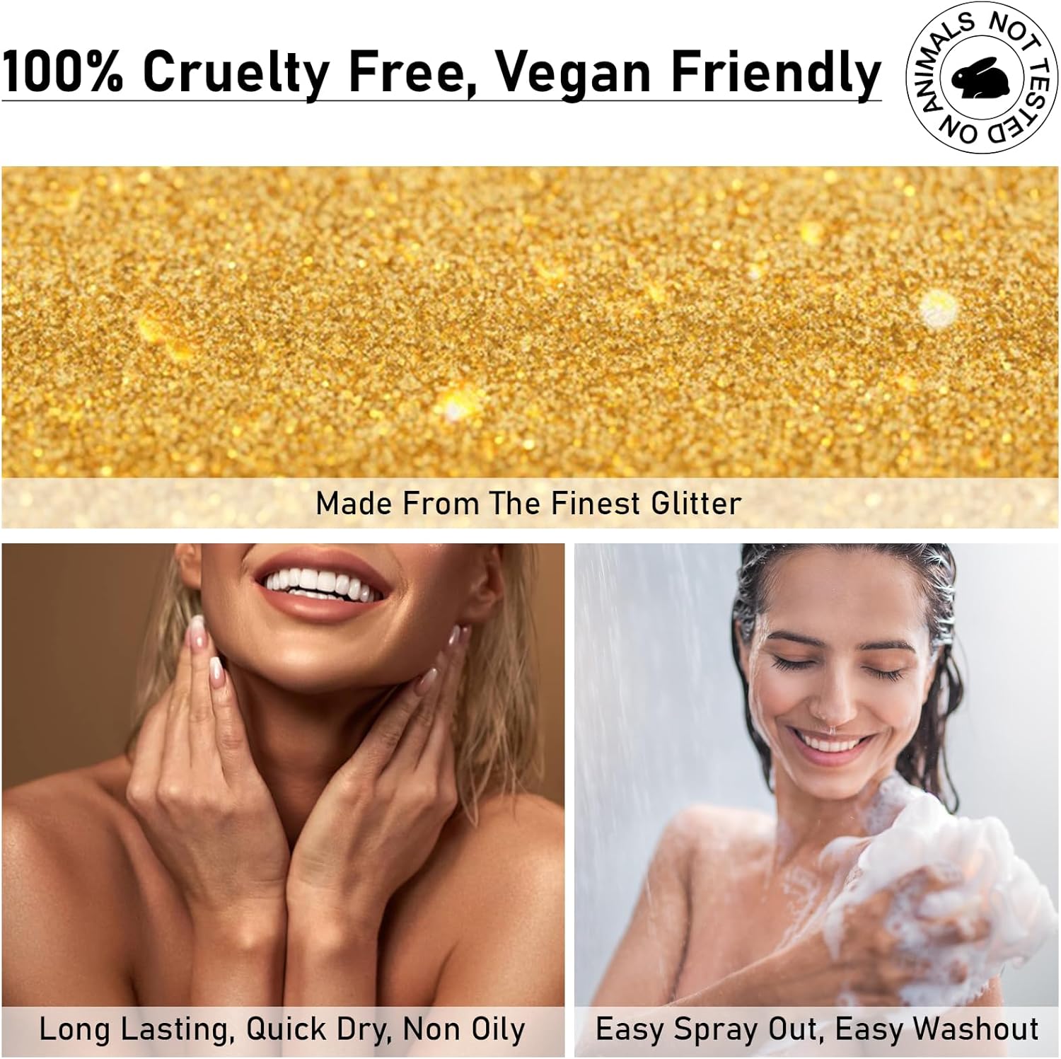 • Easy to Use: Shake well and evenly, hold the highlighter spray about 7-11 inches away from where you want the glitter to be, press the nozzle and spray evenly. Wait 60 seconds and then you'll have a long-lasting shimmering glow. Note: Gold glitter powder will precipitate at the bottom of the bottle after a long time, this is a normal phenomenon, shake well before use.