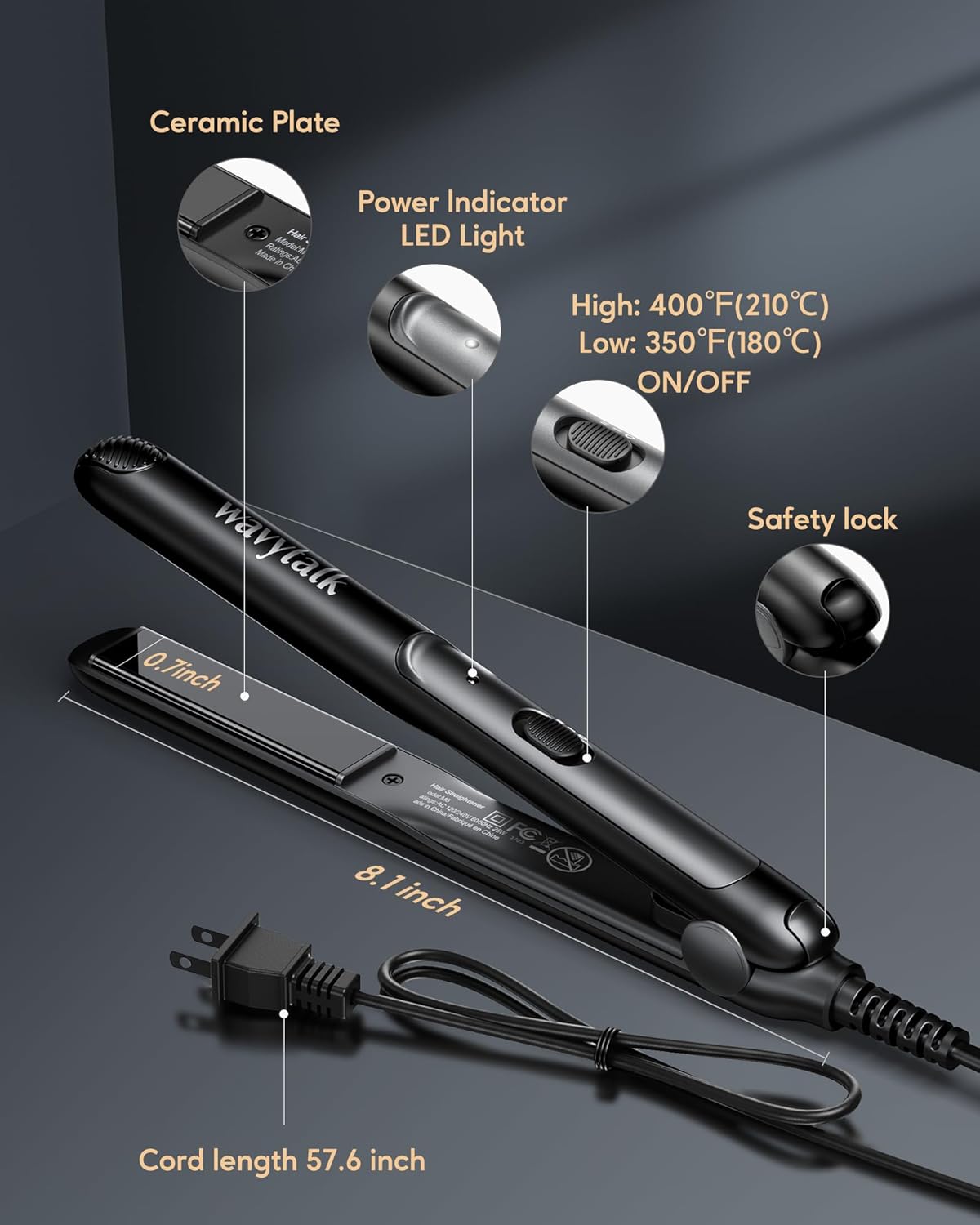 Wavytalk Pro Mini Temperature Adjustable Hair Straightener - 0.7 Inch Small Flat Iron for Short Hair, Curls, Bangs, Travel Use, Dual Voltage, Extended Size, Black