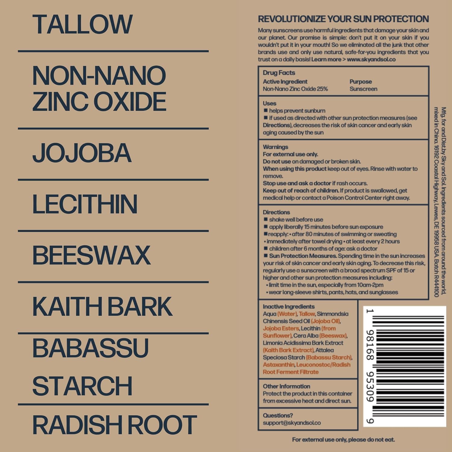 • Nourishing Animal-Based Skincare with Beef Tallow: Embrace the healing power of beef tallow, which nourishes and protects your skin. Sky and Sol offers effective sun protection while promoting skin health and vitality, making it the perfect everything cream for your skin.
