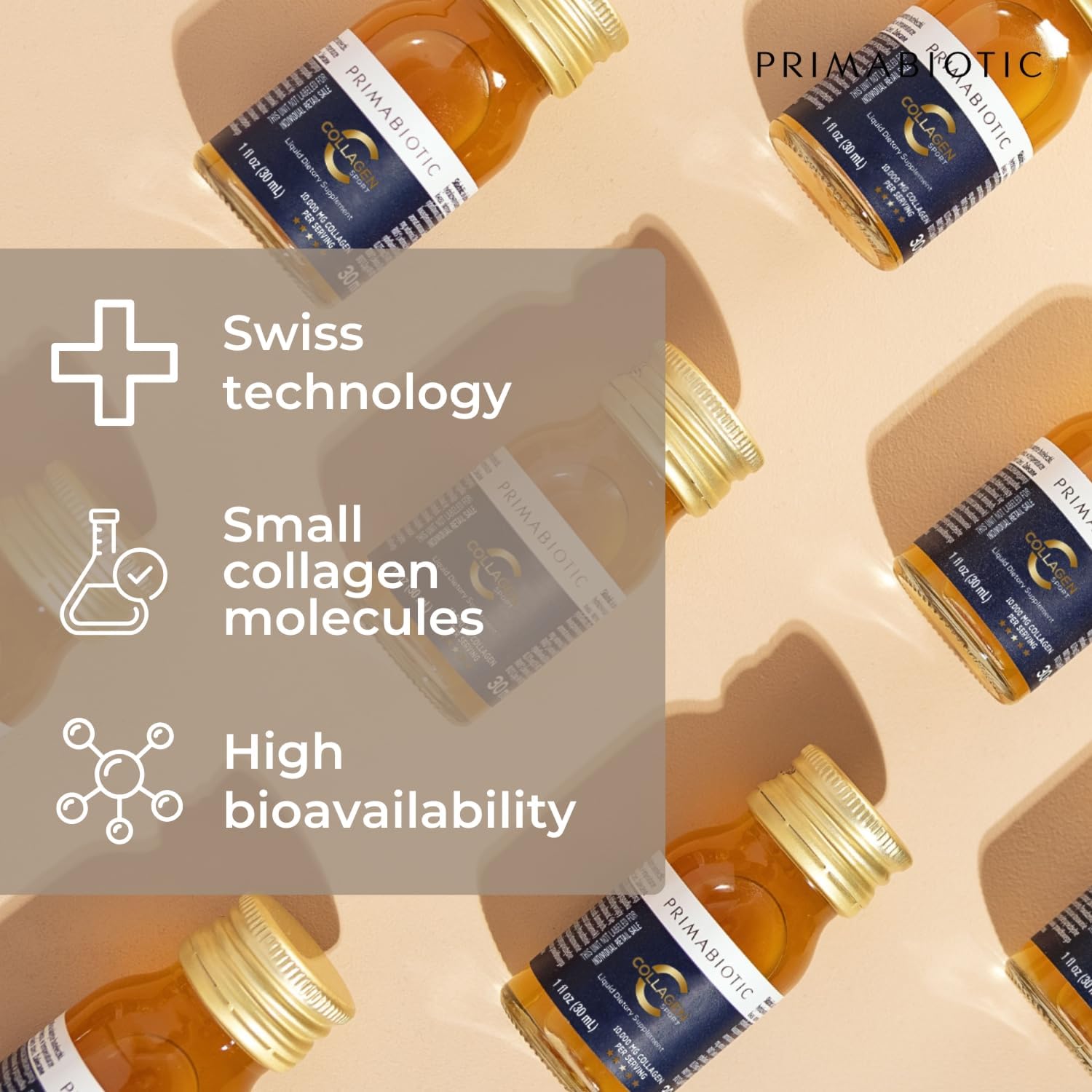 Liquid Collagen Sport- High Collagen Content [10,000 Mg] Per Serving - Hydrolyzed Collagen Drink and 12 Vitamins Orthosilicic Acid | Helps Bone Health, Hair, Nails | (30 Bottles x 30 ML)