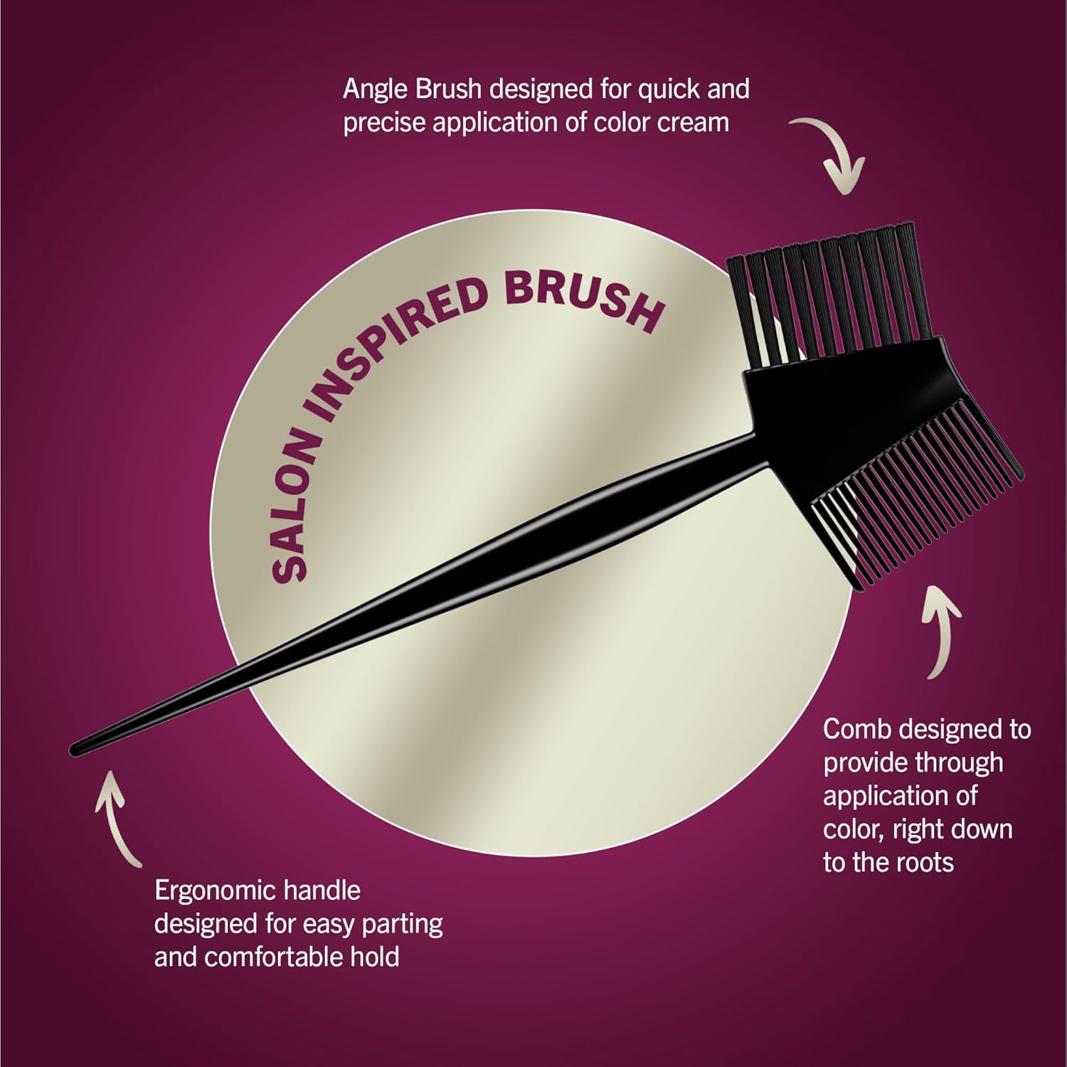 - PRECISE APPLICATION: Salon inspired brush designed to provide thorough, quick and precise application of color right down to the roots