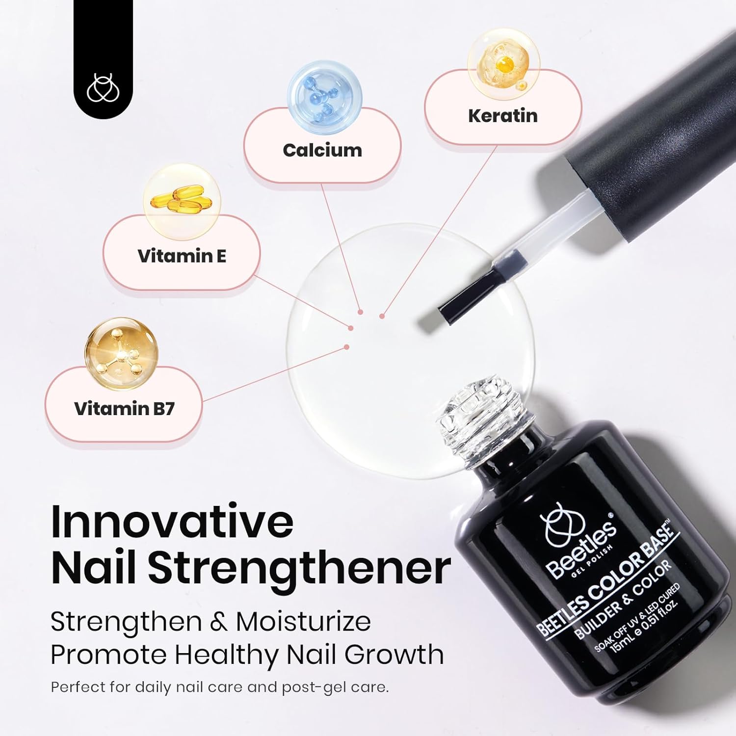 Beetles 15ml Rubber Base Builder Nail Gel - Clear Color Base for Nails Strengthening, Thickening and Sculpting, Soak Off UV LED Long Lasting for Weak and Damaged Nails