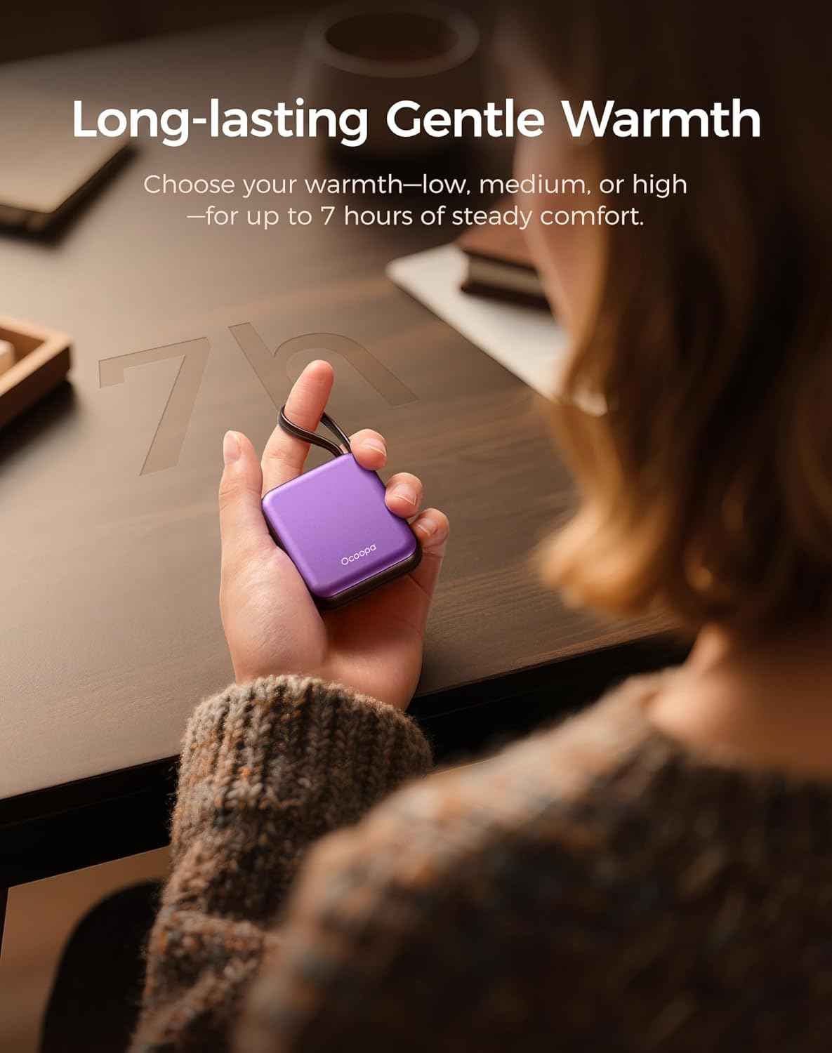 - 3.5-7 Hours All-Day Long-Lasting Heat — Keeps hands cozy from your morning walk to evening dinner without mid-day charging.