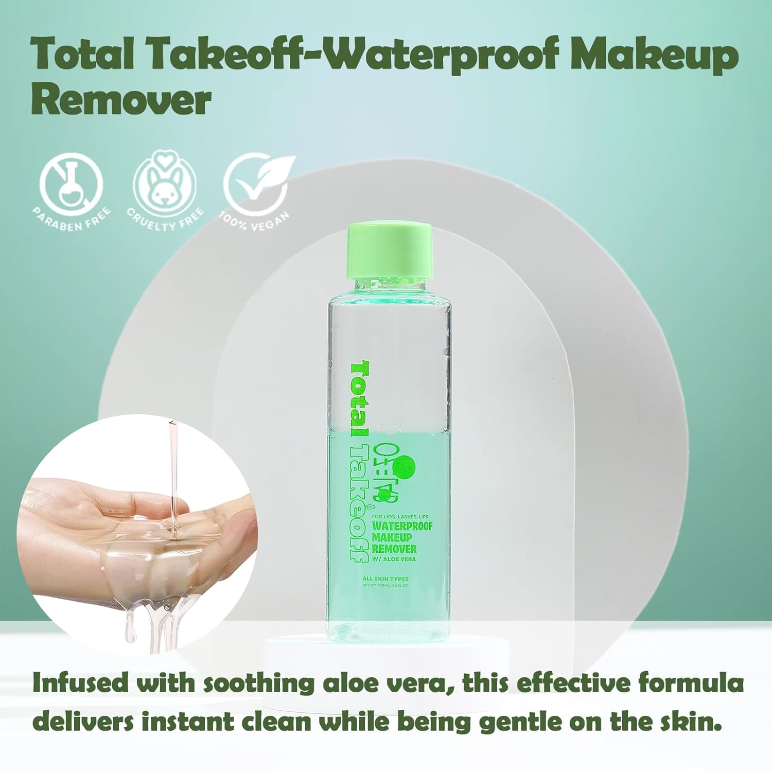 Total Takeoff Waterproof Makeup Remover – Dual-Phase Oil & Water Formula, Removes Eye & Lip Makeup, Gentle for Sensitive Skin, Aloe & Argan Oil, No-Rinse, 3.4 fl oz/100ml